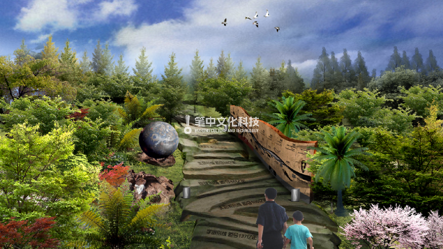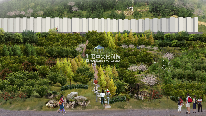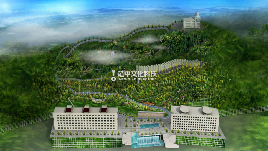 两园一带,“坤貌园”和“风清园”,通过“知行路”的串联,笔中文化科技集团建设了这座具有教学实训 、科研开发 、专业培训 、技能鉴定 、技术服务 、科普教育 “六位一体”功能的实训基地。