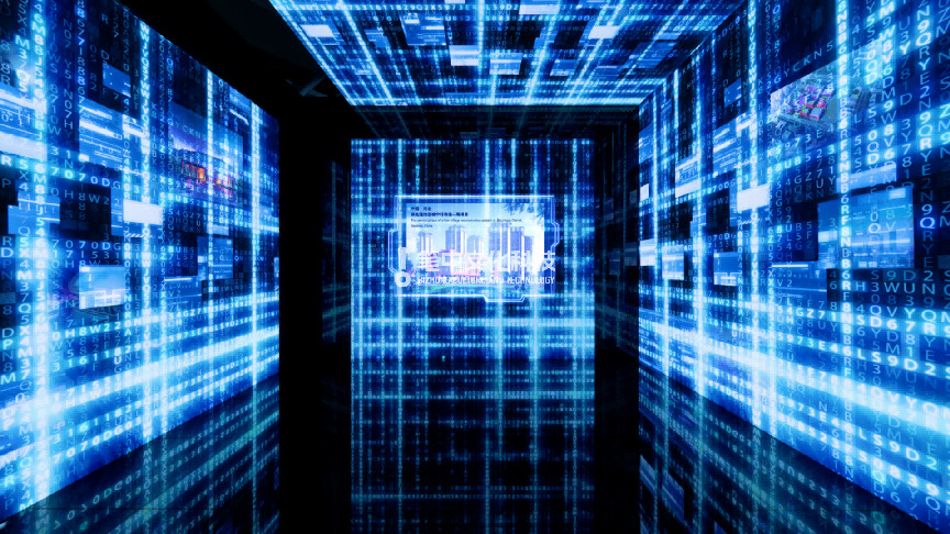 序厅设计理念为“数字立方”通过巧妙的空间设计将序厅打造为一个沉漫式立方空间。