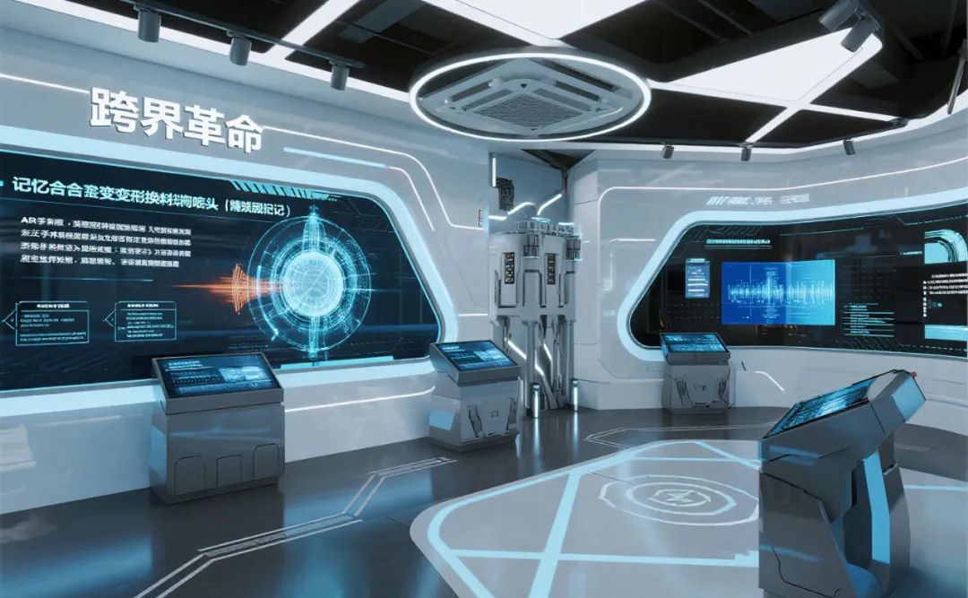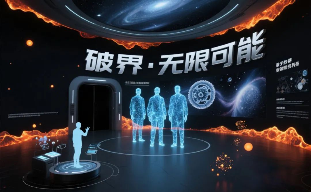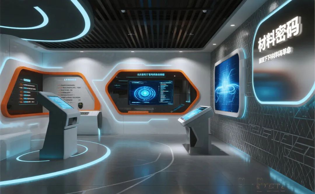 钛合金激光裂变雕塑随机械臂起舞,地面能量波纹与您脚步共震;粒子追踪穹顶实时捕捉身影,超导电子如星轨般在头顶穿梭 —— 展厅设计团队用动态艺术解构材料的微观密码!