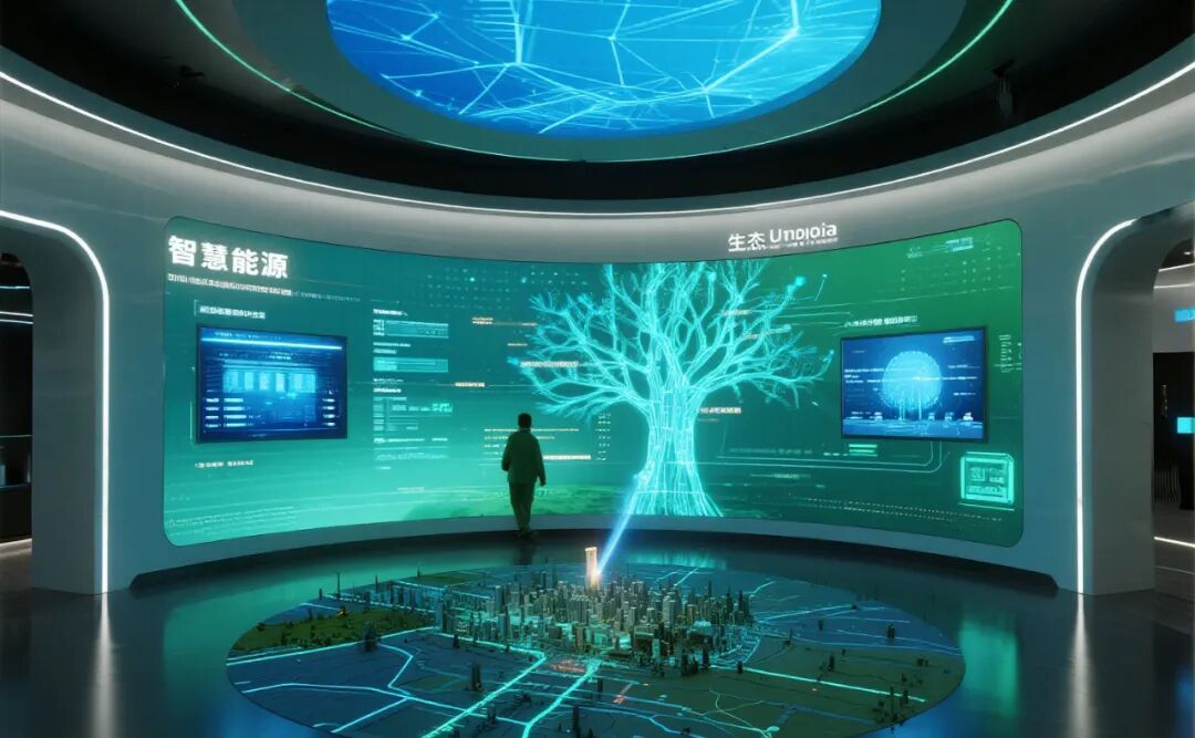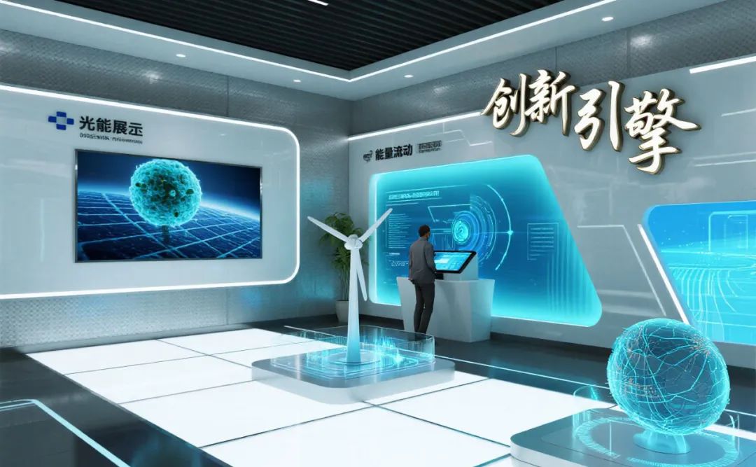 技术验证互动台:虚拟实验室赋能深度参与:优化光伏倾角、模拟风机布局、配置储能系统, AI即时反馈效益分析,让复杂技术决策触手可及,充分体现能源科技展厅的互动精髓。
