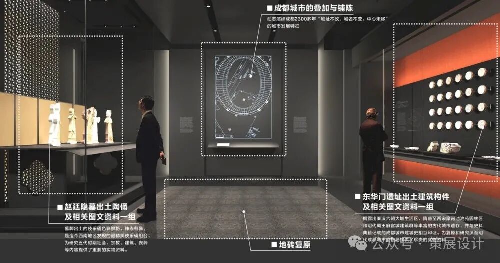 着重于对成都古代建筑的研究与复原,以及遗产的保护和利用。在这里,观众可以看到对古代建筑遗址的精心保护和修复工作,以及这些遗址在现代城市中的巧妙融入。这些努力不仅让成都的古代文明得以传承和发扬,也为现代城市的发展注入了新的活力和文化内涵。