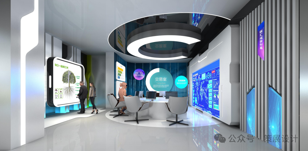 在碳汇交易展区,我们仿佛置身于一个充满科技感与未来感的交易现场。通过高科技电路板造型与液晶拼接屏的巧妙结合,我们得以直观了解碳汇交易的前沿技术和完整流程。