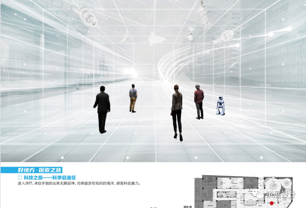 进入序厅,来自宇宙的光束无限延伸,仿佛遨游在知识的海洋,感受科技魅力。