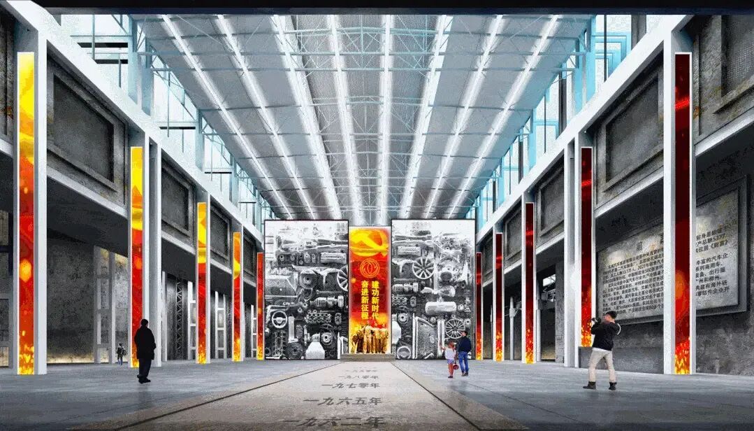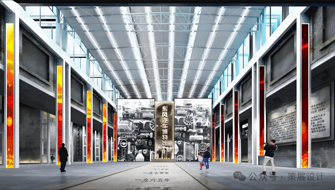 博物馆主体建筑完整保留了原二汽厂区的建筑基因:28米挑高的铸造车间被改造为中央序厅,巨型桁架结构裸露的铆钉与锈迹被刻意保留,墙面留存着1972年“抓革命促生产”的标语原迹;原总装车间的轨道运输线被转化为参观动线,观众可沿锈蚀的铁轨穿过长达120米的“时光甬道”,两侧陈列着不同年代的东风卡车总装工位复原场景。