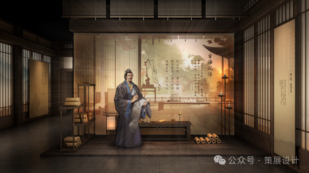 展厅内,以万卷楼为背景,打造了情境式场景体验。参观者仿佛走进了陈寿的书房,看到了他伏案著书的身影,感受到了他对学术的执着与热爱。在这里,陈寿的生平事迹被生动地展现出来:他天资聪慧、敏而好学,年少时便显露出不凡的治学天赋;他拜入同郡著名学者谯周门下,虚心求教、勤奋好学;他因不愿意逢迎黄皓而多次被贬谪,但始终坚守自己的原则与信仰;他最终著成了《三国志》这部史学巨著,为后世留下了宝贵的精神财富。