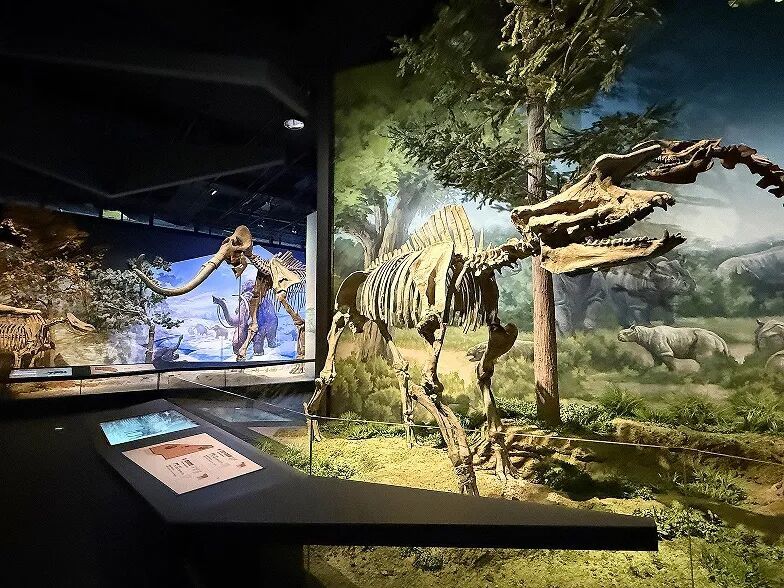 转身步入哺乳动物区,四季的景致随脚步流转:春日的嫩草从岩石缝隙中探出头,与化石群构成生命初醒的画卷;