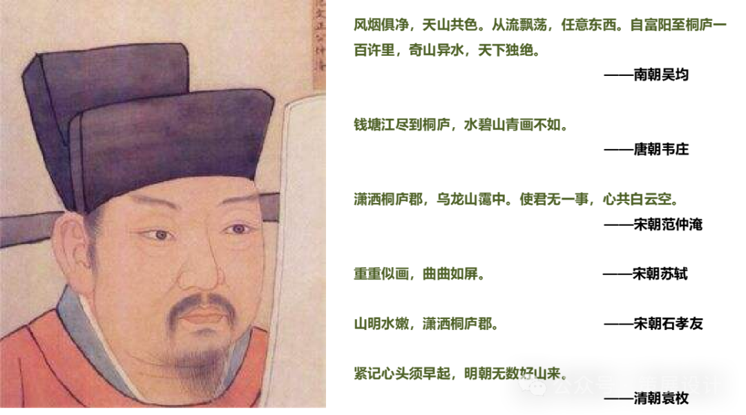 桐庐景色优美,具有悠久的生态治理历史,在生态人文部分,展示 范 仲淹、吴均等美丽桐庐诗词名言以及古代生态治理事件