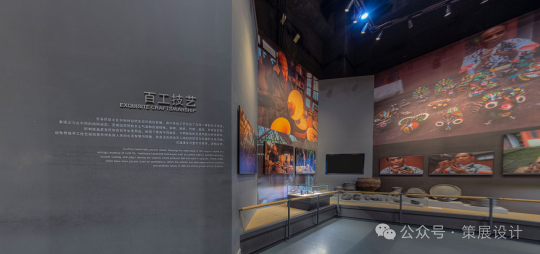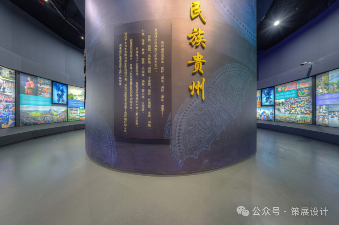 穿过序厅,巨大的环形幕布仿佛一扇穿越时空的窗,正滚动播放着贵州省的秀丽风光、乡土建筑、风俗风貌、生活生产和手工技艺等。那些峻山秀水、那些古朴的村落、那些勤劳的人们,都在这幕布上生动地呈现着,极具冲击力,让人仿佛置身于那片神奇的土地之中。