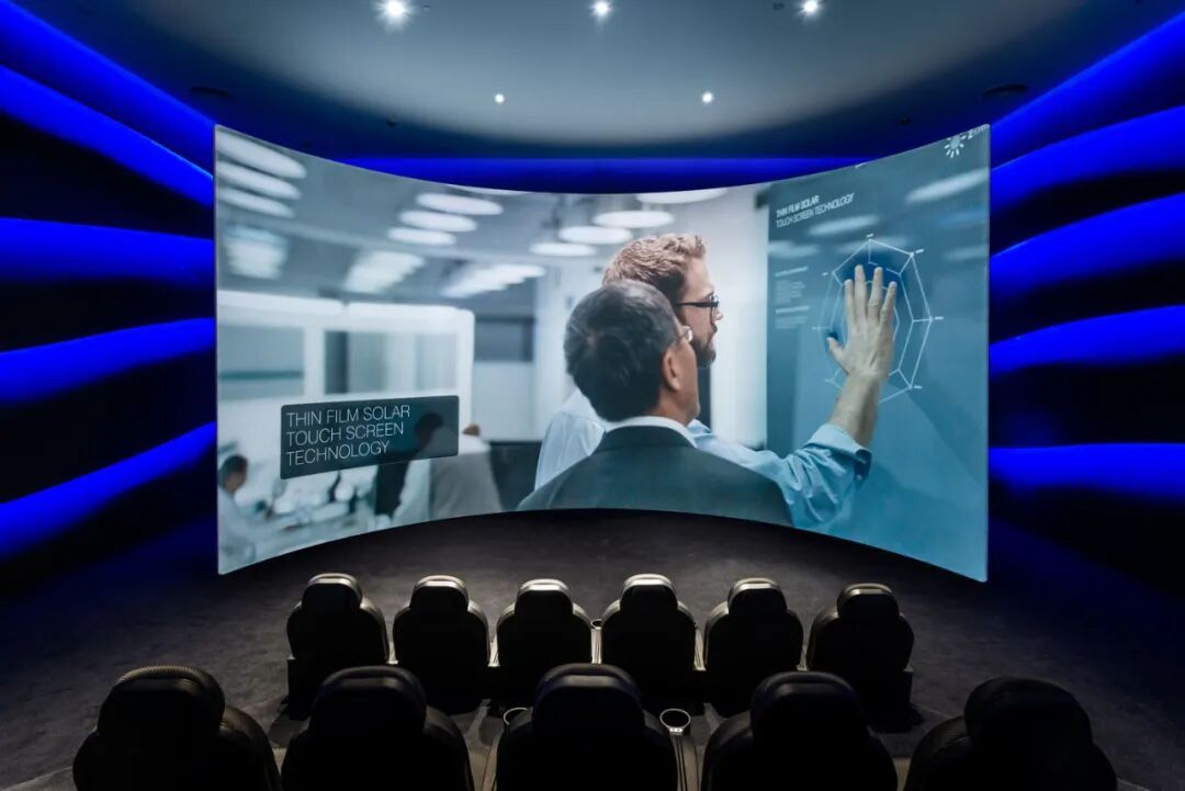 The clean energy exhibition hall covers an area of more than 1,900 square meters and is a unique exhibition experience center. Through the huge 180° movie screen, the audience can learn about Hanergy's development history, success and the future of sustainable energy production. To this end, Durblin is crafting a roughly 10-minute film that includes breathtaking footage shot with special cameras, drone capture and computer graphics (CGI).