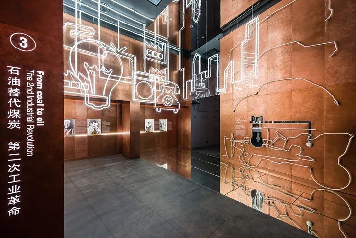 展厅的设计将以融合艺术和技术的方式呈现,以引人入胜的形式展现能源生产的历史演进。通过沉浸式的展示手法,参观者将沿着时间轴穿越过去的世纪,了解能源产业的发展历程,从传统能源到现代的可再生能源,感受人类在能源领域取得的伟大成就。