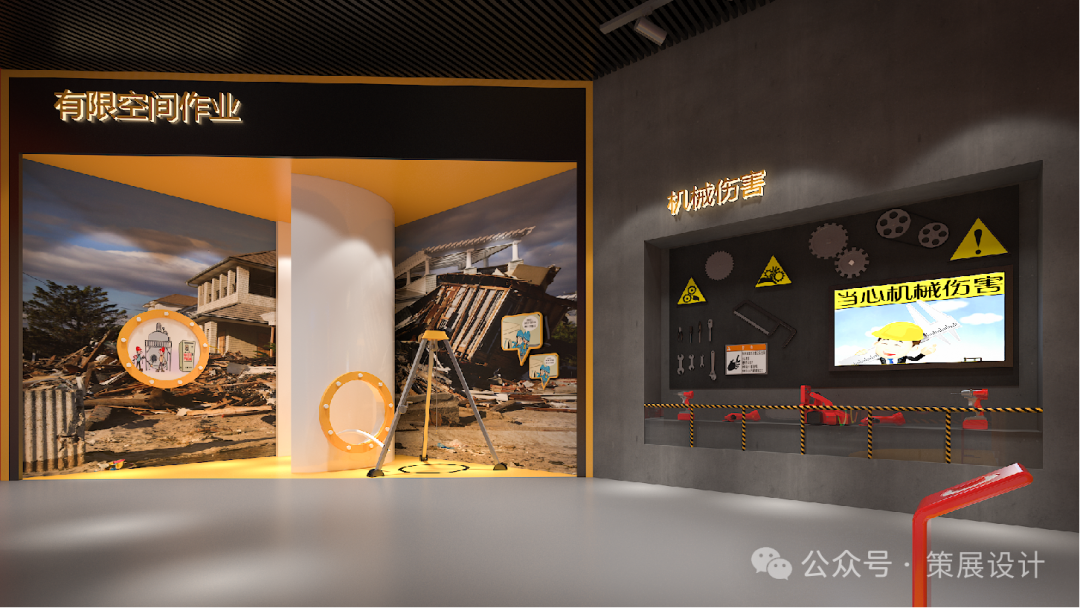 进阶体验: 二层聚焦危化品、粉尘爆炸、有限空间作业等生产安全场景,通过模拟操作让青少年体会高危行业风险。