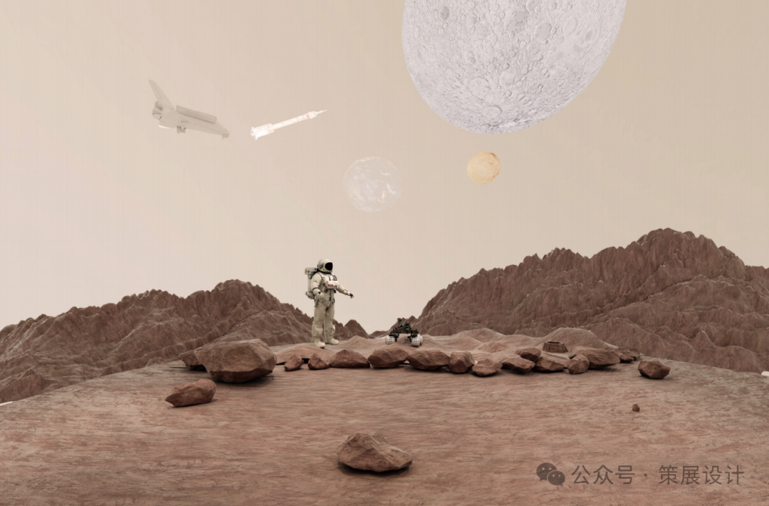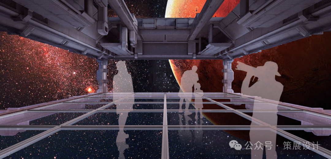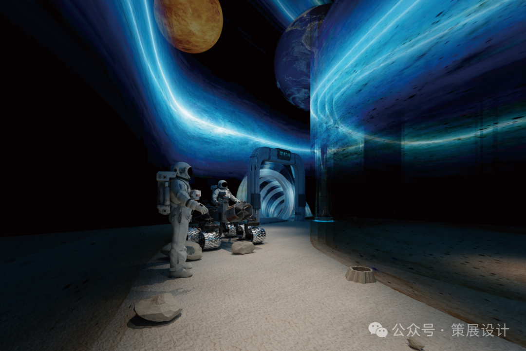 海洋体验区的尽头是一座海底火山,随着海底火山一阵猛烈的喷发,观众被送上了太空,完成了从海洋体验区到太空体验区的过渡。观众乘坐太空舱徐徐下落,期间能够看到各种迷人的太空景象。步出太空舱,先后来到月球、火星等体验区,感受在月球和火星上奇妙的旅行感觉。在月球体验区,观众可以看到嫦娥奔月故事的演绎以及中国登月工程的介绍,与月球车亲密接触。在火星体验区,我们将打造7D沉浸式体验效果,观众在此可以感受失重的体验,模拟在火星上寻找地外生命。在太空体验区,我们还设计了虫洞、黑洞、外星人等科幻题材的内容,让观众在亦真亦幻之中,完成海洋和太空的奇幻体验之旅。