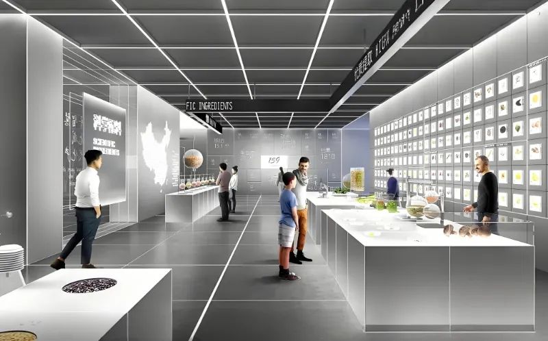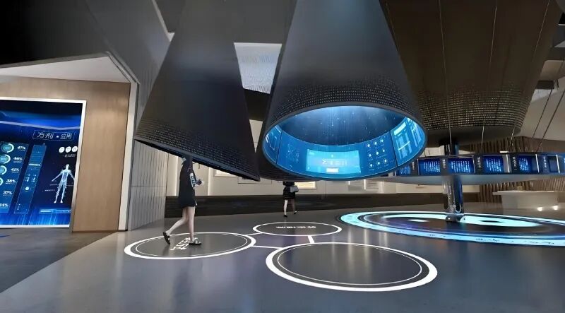 最终空间取意"悬壶济世",巨型葫芦装置悬于中庭。下层展示历代医家蜡像:董奉在杏林间施诊,钱乙于案头调制紫雪丹,王孟英伏案撰写《随息居饮食谱》。中层透明隔层呈现现代中药颗粒剂生产线,无数药液在管道中如星河流动。上层穹顶布满光纤药草,随观众呼吸明暗变幻,喻示"人禀天地之气生"的永恒真谛。