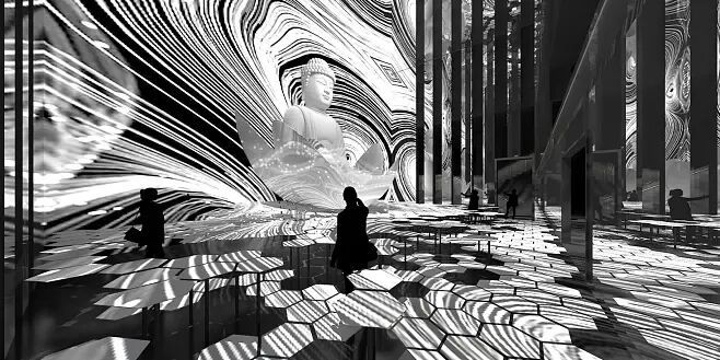 “思维策展”概念通过脑机接口技术,将策展人的创意构思直接转化为虚拟展陈,观众也可通过集体意识参与布展。这种创作模式打破了专业与业余的界限,使空间真正成为社会共识的“结晶场”,体现了《易经》“群龙无首,吉”的民主理想。