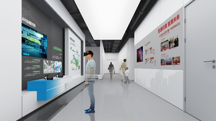 为此,设计团队设置了 5G元宇宙大脑、智慧水新生和党建引领智慧未来三个主题展区。