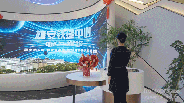 异形多屏互动装置全方位展示雄安自贸区优越的营商政策、发达的交通网络、低廉的商务成本等良好的配套条件。