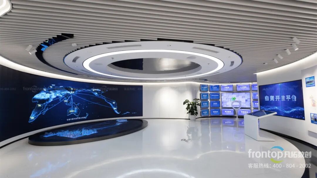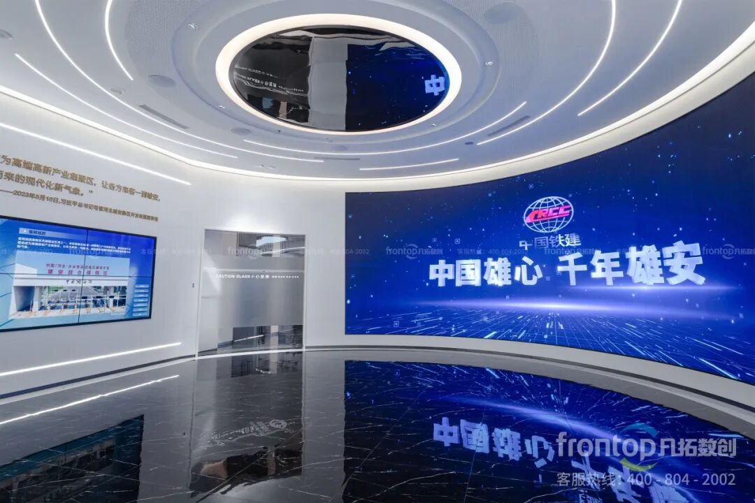 凡拓数创为展示中心规划设计 见·雄心、通·世界、启·未来 三大核心功能区,综合呈现昝岗片区规划、自贸试验区建设及铁建企业品牌等发展概况。