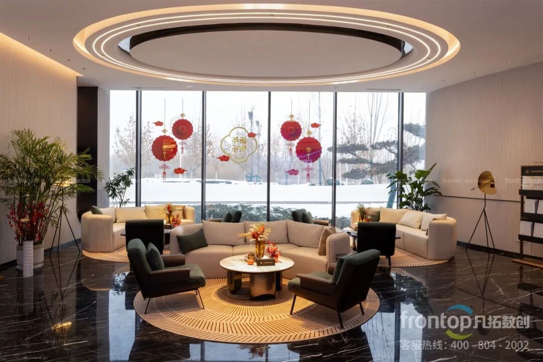项目沙盘将豁然开朗的视野体验,从与之相邻的品牌展示区延伸到更为通透、开放的空间中。丰富的自然光线透过光伏玻璃采光天窗,为室内带来多样的视觉效果。