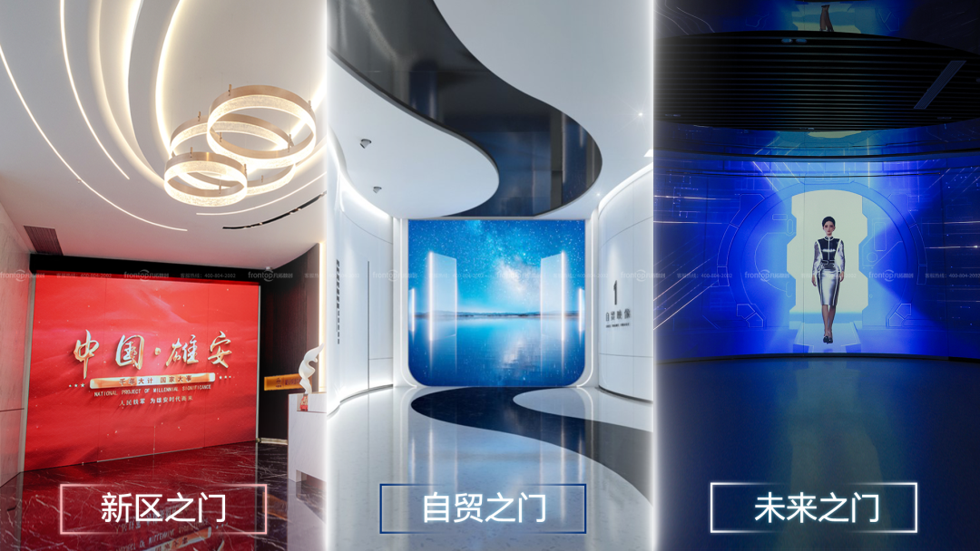 中国自贸试验区正于新时代,泼墨挥毫最出彩的一笔。展厅二楼以多层次可视化的互动展示 全景 式 、立体化 呈现雄安自贸试验区建设成效和发展活力。