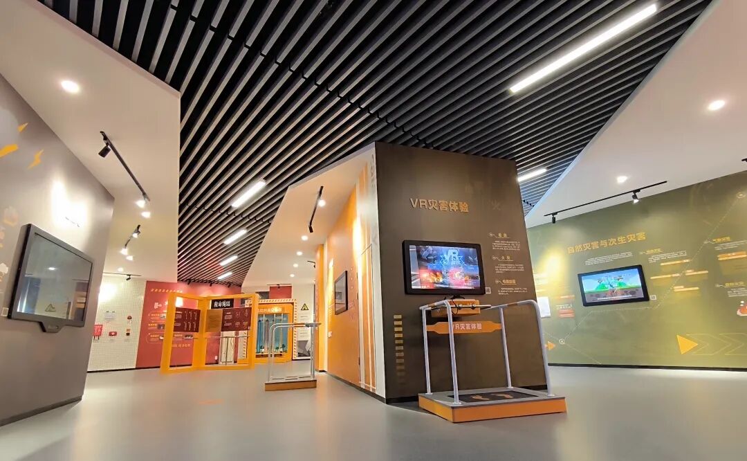 该展厅主要展示了防灾减灾工作成果,倡导观众成为防灾减灾工作的积极参与者和推动者。通过高层烟雾逃生互动装置,真实体验灾害来临时应对措施。