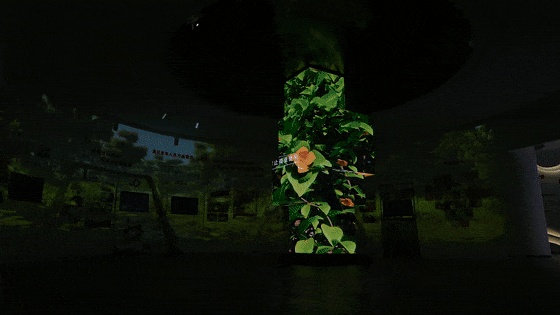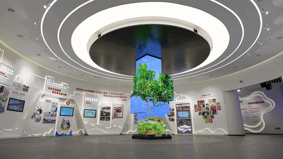 为增强展览的体验性、生动性,策展团队合理运用现代化的科技手段,提升展馆的数字化和互动化水平。结合空间特点,在展示核心区创意打造了“幸福之塔”数字艺术装置。