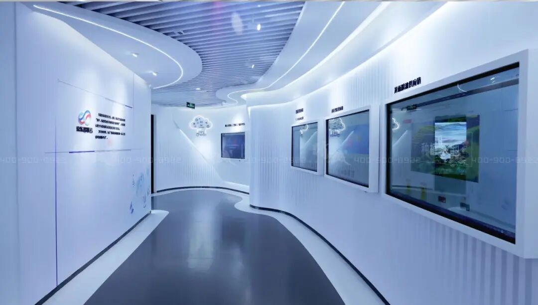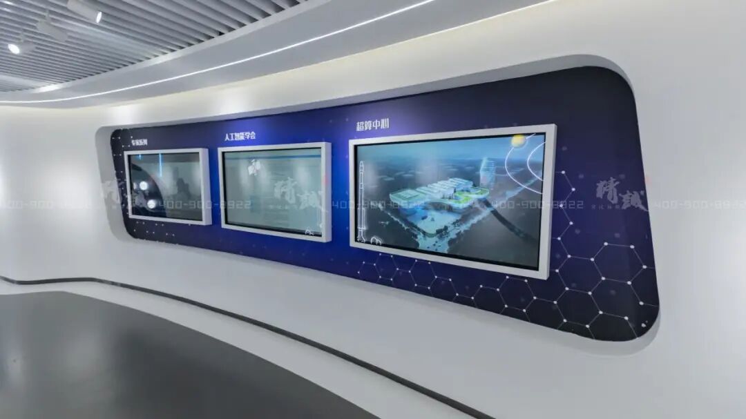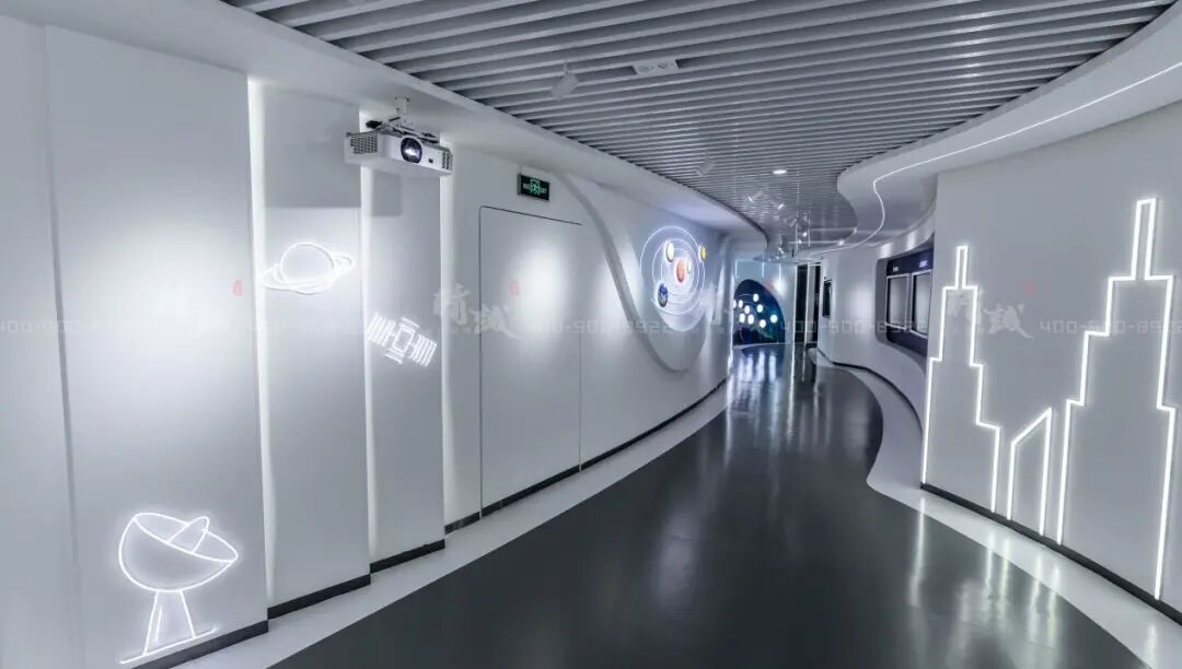 展厅区作为创新中心的核心展区,布展面积约620平方米,分为序厅、航天基地版块、京东人工智能创新中心、企业展示、尾厅五大板块部分。