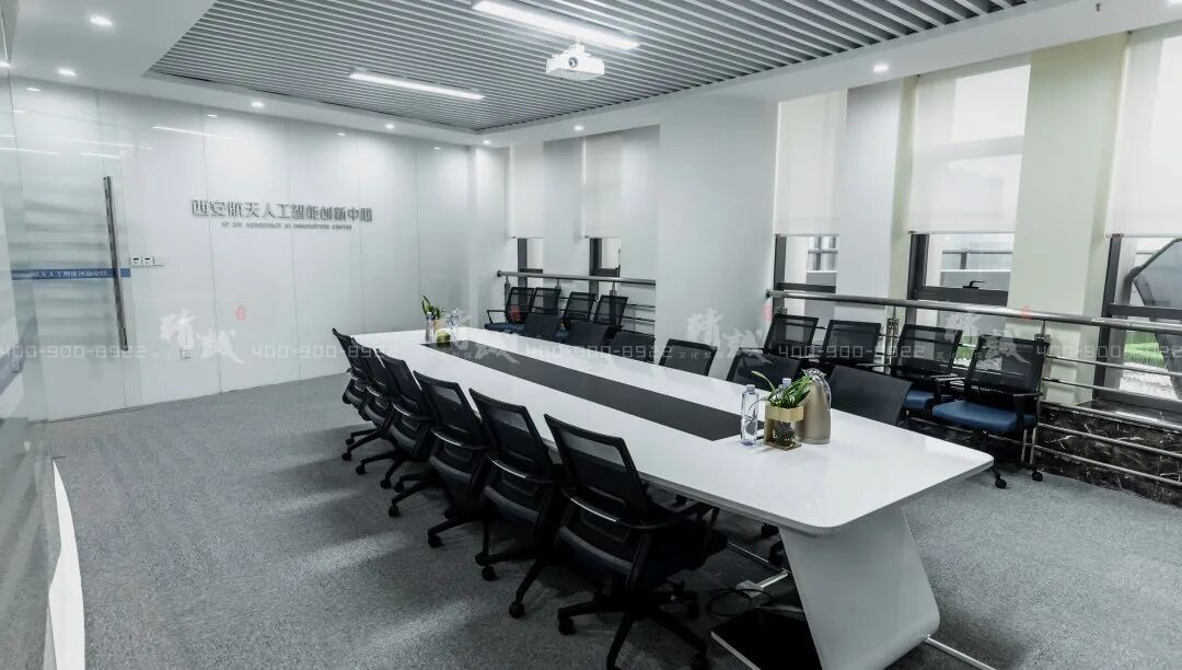 西安航天人工智能创新中心位于东长安街666号京东大厦5层,由展厅区、办公区、会议室、路演厅、休闲区、露台休闲区等六大功能分区构成。