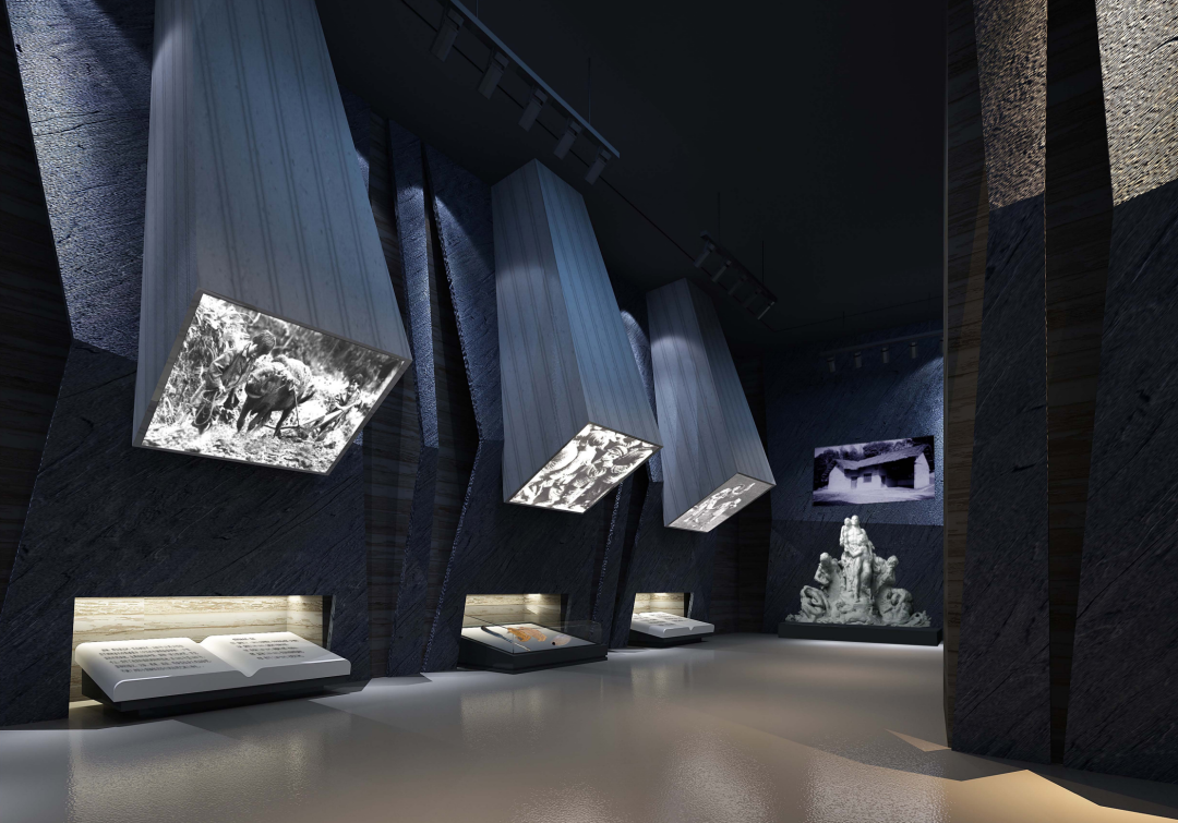 由序厅进入,该展区是整个展厅的导序,由第二部分进入,是承转,由第三部分进入,是高潮。我们力图打破传统空间的概念,营造这样一个既是独立的参观空间,由成为整个展厅枢纽的重要地带。塑造一个或发人深思,或激情澎湃的放映空间。