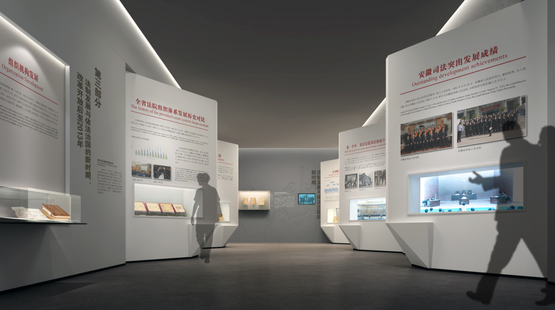 安徽是中国文明的重要发祥地,地理位置独特,衔接南北,人杰地灵。多元文化的汇聚,形成了安徽丰富繁荣的文化资源和渊远流长的灿烂历史。在历史的长河中,安徽法制文化的发展是我国司法进程中不可或缺的发展源流。今天,在党的十八届四中全会明确提出全面推进依法治国、弘扬法治精神的大背景下,安徽司法博物馆的筹建具有很强的现实意义和必要性。充分挖掘安徽省及全国丰富的法治历史文化资源,将安徽司法博物馆打造成融纪念性、知识性、教育性为一体的法制宣传教育阵地。项目坐落于安徽省合肥市(滨湖新区包河大道以东,安兴路以北),利用安徽省高级人民法院滨湖新区审判大法庭建筑第五层部分区域建设,面积约1200平方米,由序厅、院史馆、法制宣传厅、廉洁教育厅及配套功能区组成。