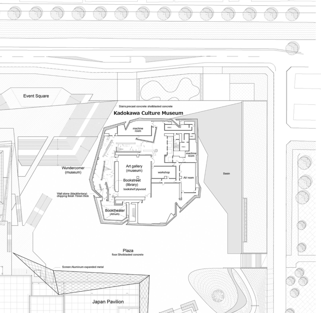 The Kadokawa Culture Museum is a futuristic cultural labyrinth that agitates various binary oppositions brought by modern times, such as cities and suburbs, high culture and low culture, in a three-dimensional and cross-sectional manner. The site, the Musashino Plateau, was created by the collision of four tectonic plates surrounding Japan.