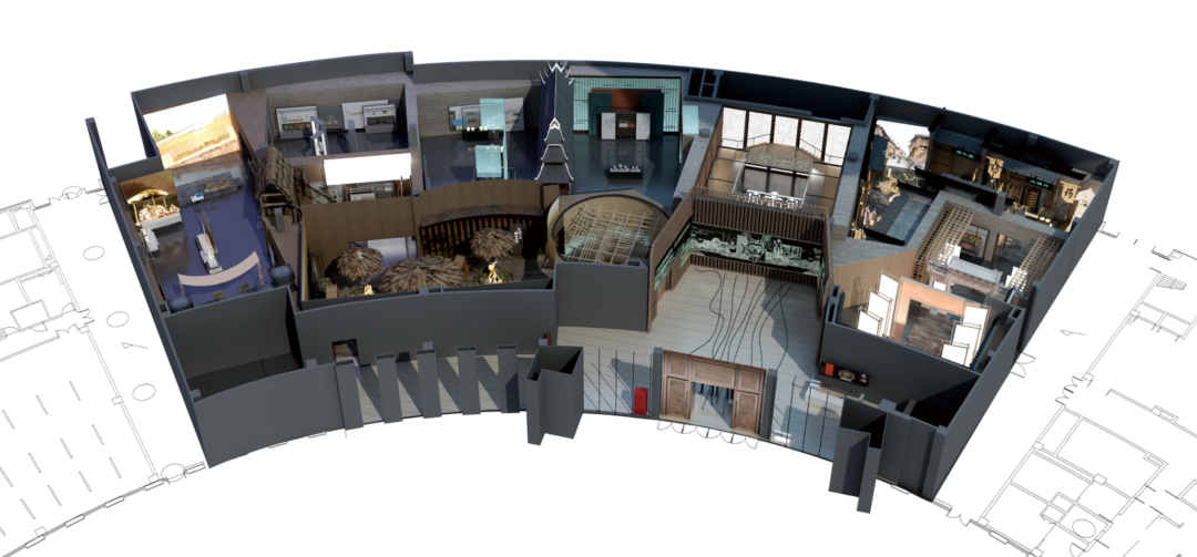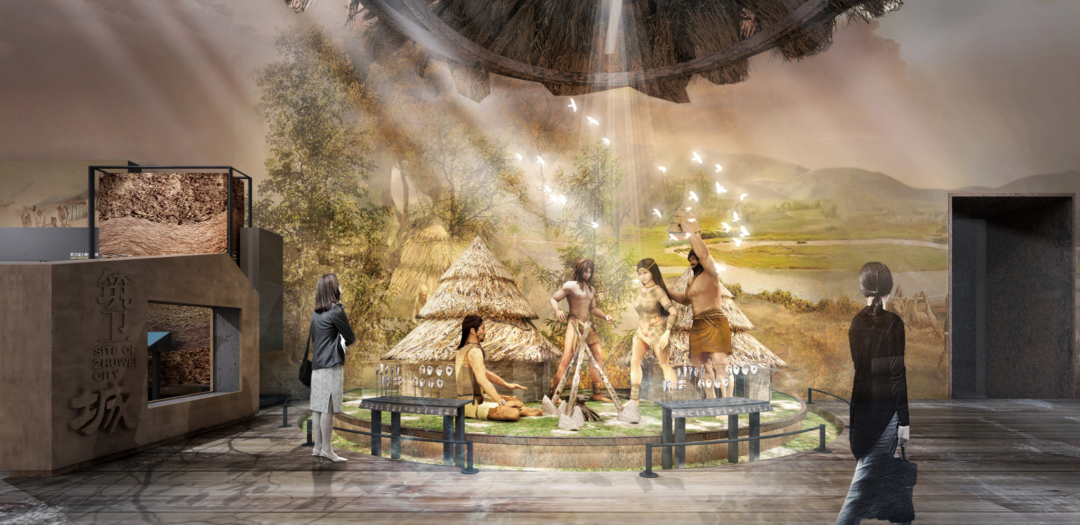 场景营造与内容展示融为一体,在原始部落的氛围空间中,为观众逐一解读筑卫城文明的发展脉络。