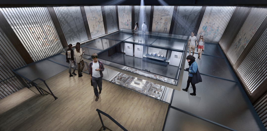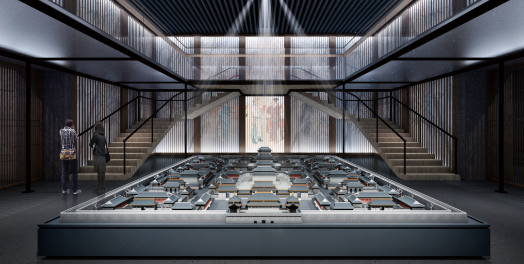 筑卫城遗址是文明开启的首个重点,是探索江南从原始时代至早期文明进程的重要见证。顶部采用微循环控制系统,模拟天光渐变,与展面“日出月落”的投影形成呼应。