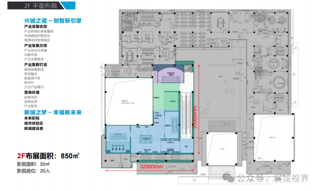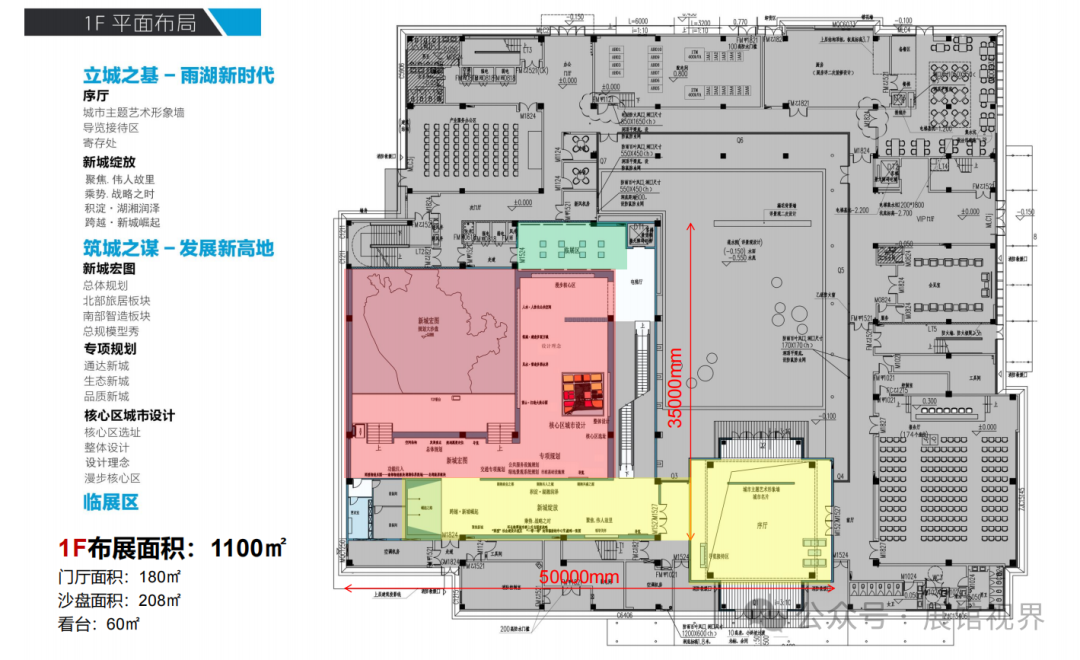 一般动线:在讲解员的带领下,经战略优势展区,至总规大模型总览新城宏图,后到城市设计与重点项目展区;乘扶梯上二楼,先看产业发展方向,重点介绍“2+2”产业集群与产品展示,然后了解招商政策;最后通过宜居城市和未来影院感受新城未来的城市魅力,时长可控制在40-60分钟。