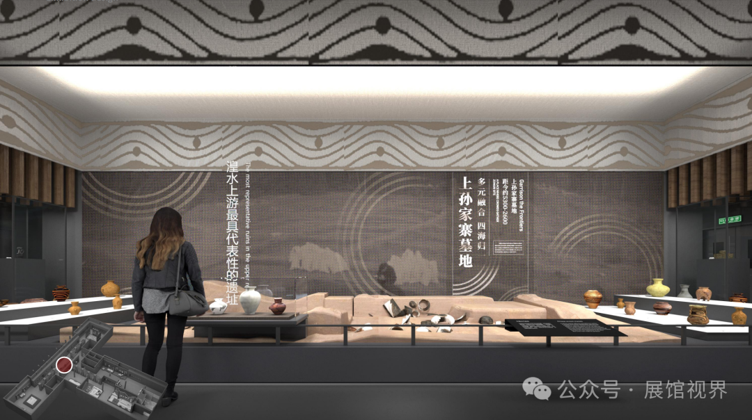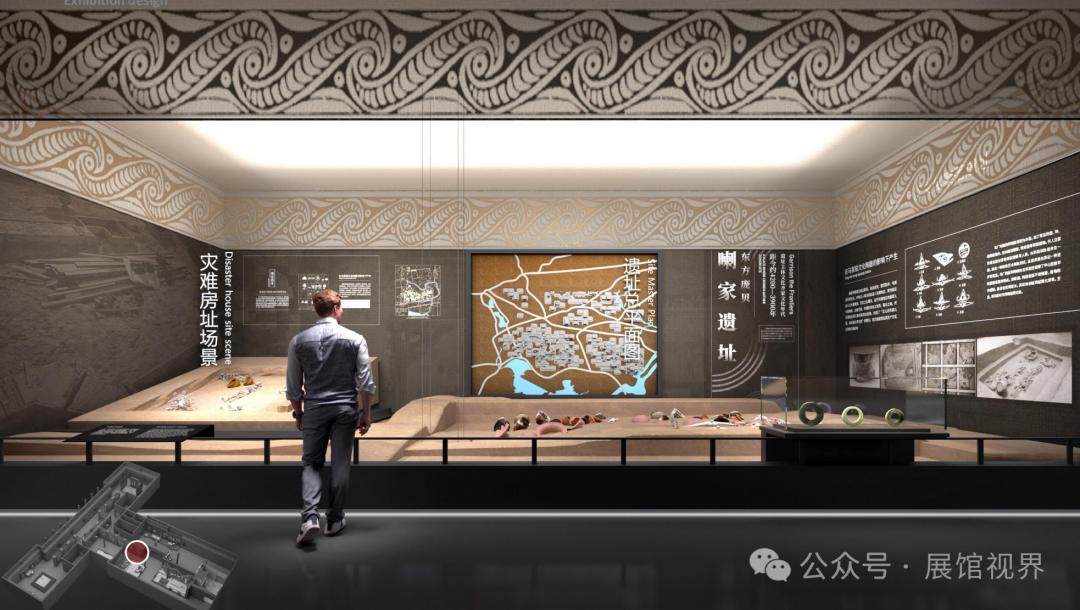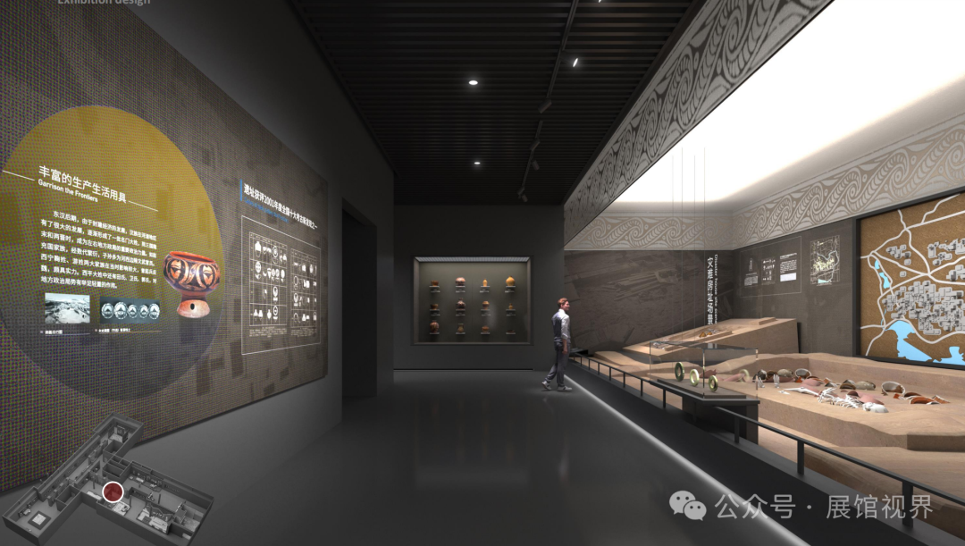 展厅采用双线叙事结构,以青海发现的文化遗存为主线,探索遗迹中的线索、找寻该地区的文明密码;另一条线为文化遗址中发现的文物,作为文明存在的证据及文化的载体,从中可以获得更多关于该时期的信息。考古线和成果线相互对应,构成了中华文明大系统中的一部分。从以往的经验考古到如今高科技装备的运用,既推动着人类探寻历史溯源的脚步,也推动着文物保护技术的进步。展览以青海发现的遗址为主线,以代表文物、史料记载、多媒体演示为辅,突出展示青海在大历史背景中的文化内涵。