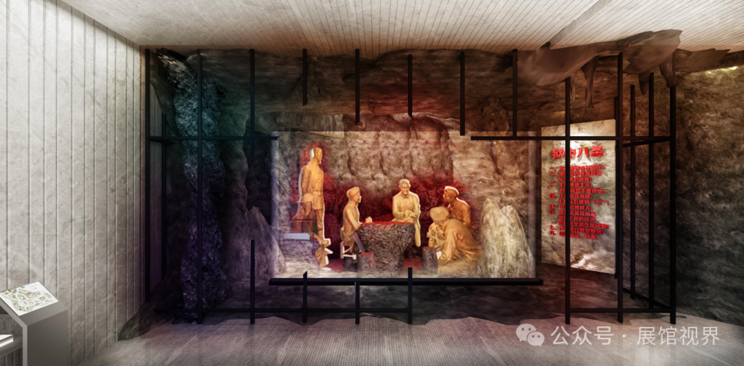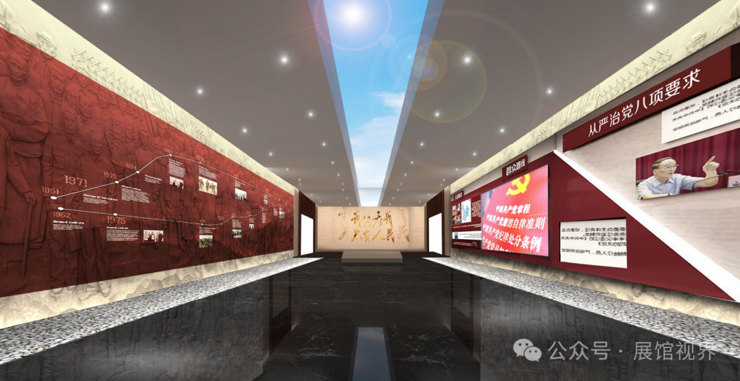 承接着上一展区神圣庄重的氛围,步入此空间,仿佛踏入了一段波澜壮阔的红色史诗。这里着重讲述着中国共产党在风雨兼程的发展历程中,逐步铸就的宝贵精神。