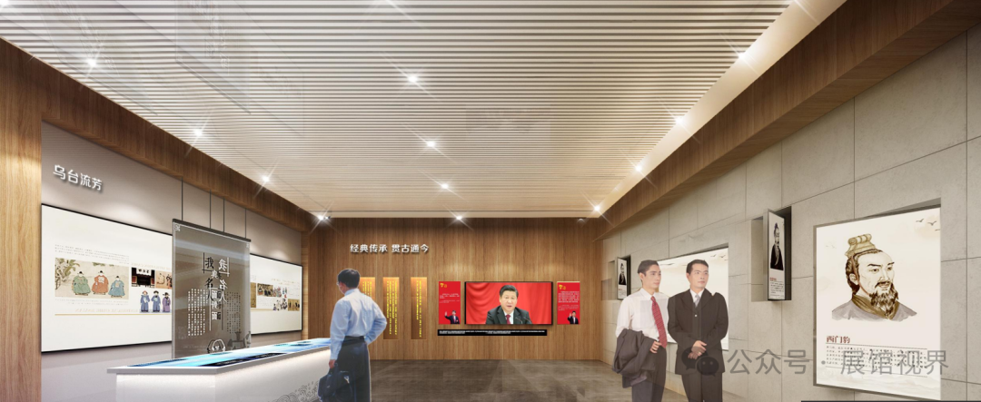 踏入第一展区,一幅正气与俊雅交织的画卷在观众眼前徐徐展开。这里采用新中式设计风格,巧妙融合图文展示与触控查询装置,缓缓铺陈出运城这片土地上道德楷模与廉洁先贤的动人篇章。