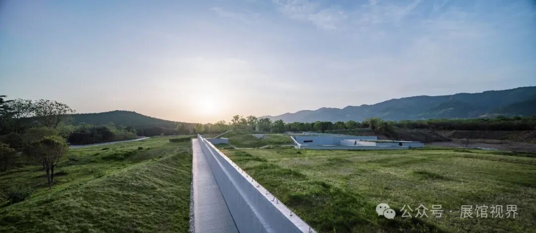博物馆的参观体验绝不限于在展厅内部,而是由馆外开始,回到馆外结束。进馆、馆内、出馆三个环节都有各自的空间组织方式和视觉规划用意,将场地独有的环境资源提高到与文物本身同等重视的程度。