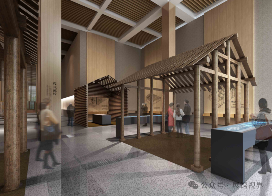 展览以时代为序,以专题方式展开,勾勒出中国建筑科技历经 4 个进程:启蒙、发展、定型直至巅峰的古代经典时期;中西交汇、新旧接替的近代过渡时期;模仿探索、多元融合的现代繁荣时期;与时俱进、领先世界的当代创新时期,反映时代特色,体现不同时期中国建筑的风格与技术特点,进而引发人类对未来建筑的美好憧憬。展览形式设计依此展开。