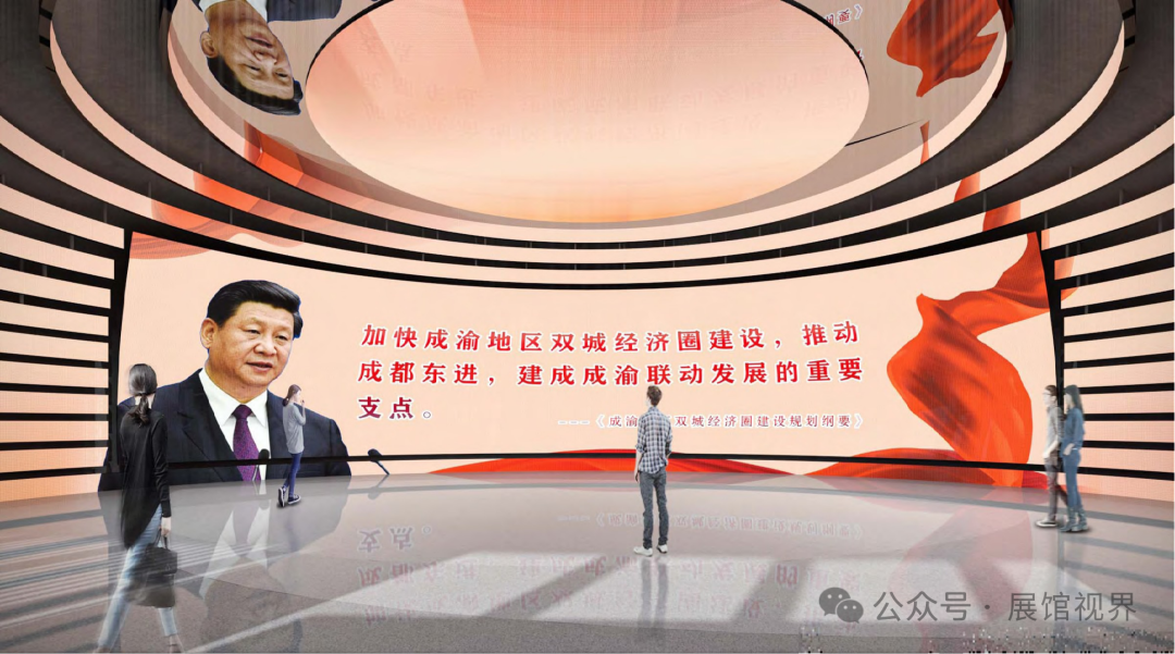 步入序厅,扑面而来的是未来城市层层叠叠、充满科技感与未来感的城市场景,让人感知未来美好生活。通过弧形大屏播放“美好生活”主题影片,以蜀民不断探索建设理想家园的故事为引,奏响人民不断追求美好生活的序曲。