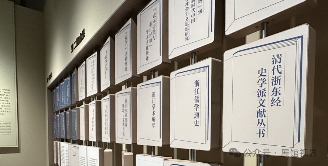 在浙江文化成果展区,除了基本陈列之外,其 “书籍成果” 的展示方式格外引人注目。透明书墙以其通透的材质,让书籍仿佛悬浮在空中,既充满现代感又凸显了书籍的神圣与神秘;翻转书墙则通过动态的展示形式,增加了互动性和趣味性,使观众在翻阅的过程中感受知识的魅力;投影书墙利用先进的投影技术,将书籍内容以生动的画面呈现出来,为观众带来全新的视觉体验。
