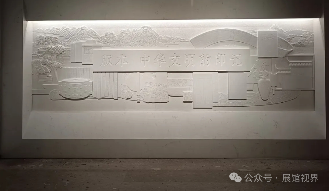 序厅选用汉白玉材质,采集历史上各种版本的形态予以展现。汉白玉的温润质感与历史版本的丰富形态相互映衬,赋予序厅一种庄重而典雅的氛围。这种设计寓意深刻,版本在此不仅仅是简单的文献载体,更是中华文明的生动印记。每一个版本都承载着特定时期的历史记忆、文化传承和人类智慧,它们如同璀璨的星辰,串联起中华文明的浩瀚长河,提醒着人们版本对于传承和弘扬中华文明的重要意义。