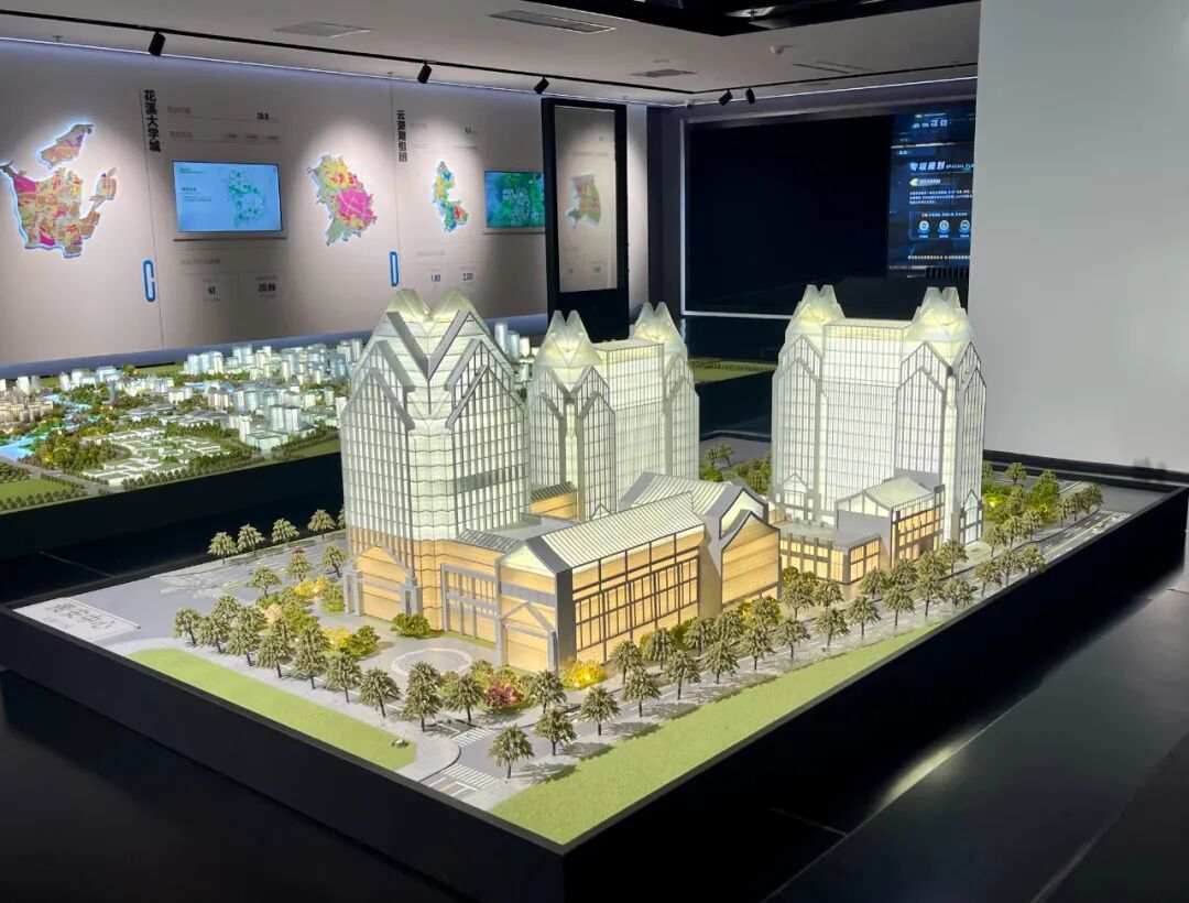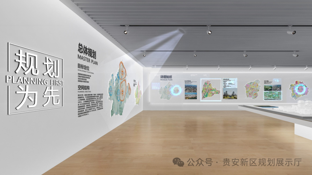 展示厅集规划展示、文化教育、休闲娱乐等多功能于一体,通过高精度的沙盘模型、多媒体展示及互动体验设备,全方位展示贵安新区的城市规划、产业布局、交通网络及生态环境等关键信息。走进规划展示厅,仿佛置身于一个充满科技感的未来世界。