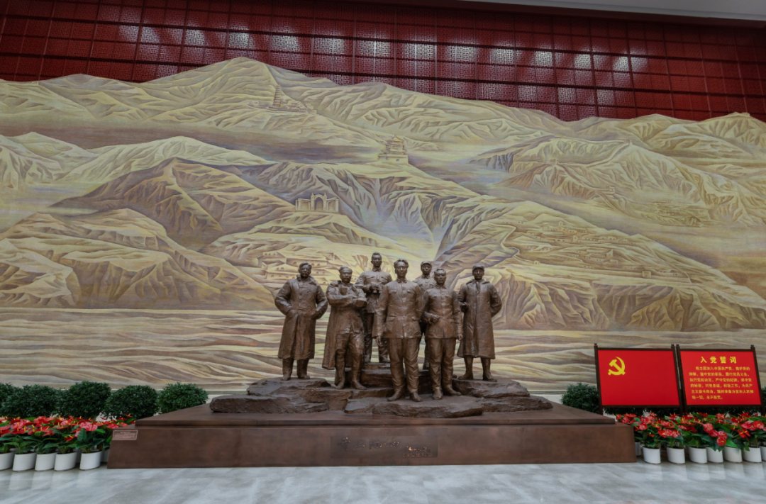 序厅中央的主题雕塑《黄土地·1947》,生动再现了毛泽东、周恩来、任弼时、林伯渠、彭德怀、贺龙、习仲勋等老一辈无产阶级革命家的光辉形象。