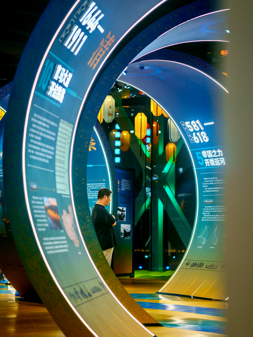致时光版块,穿越炫酷的历史时空隧道,从夏商西周直通宋元明清,我们可以身临其境地感受中国古代交通的演变进程……”走进交通科普馆,一幅千里江山图徐徐展开、一条时空长廊蜿蜒前行,让观众走进历史,品味中华民族数千年来的交通之变。