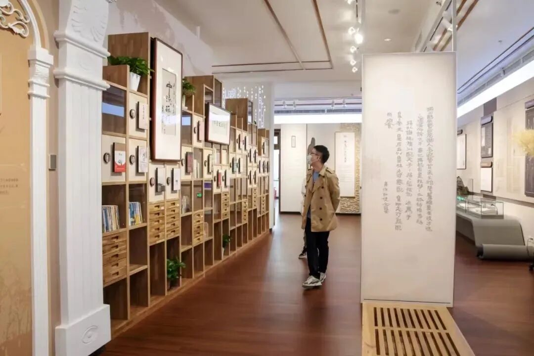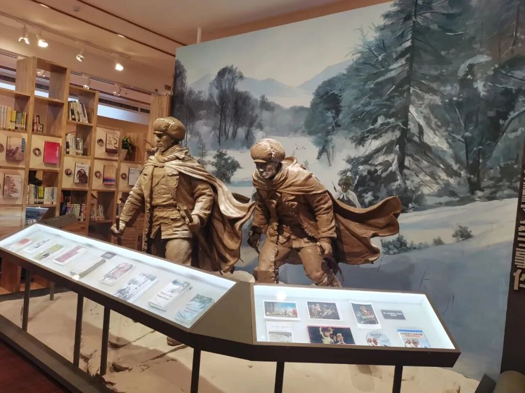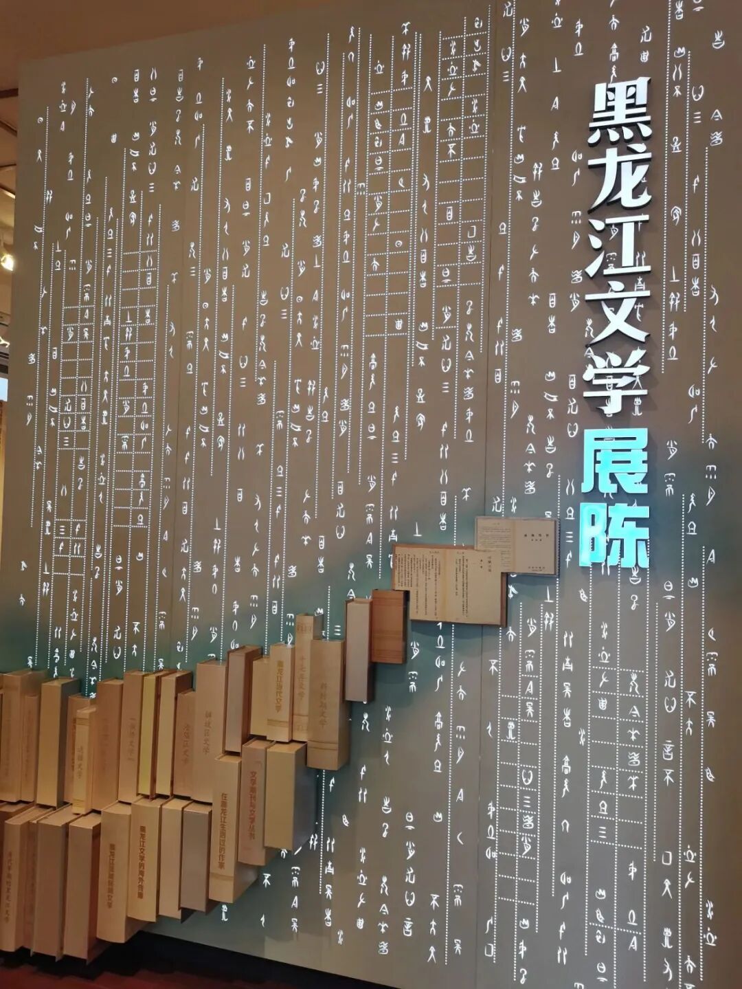序厅以“书”为设计元素,镂空透明的展墙如灵动的书页。书籍汇成蜿蜒的黑龙江,连绵不断,象征文学的源远流长,意蕴深远。书脊文字形成展厅的总导览,令人一目了然。