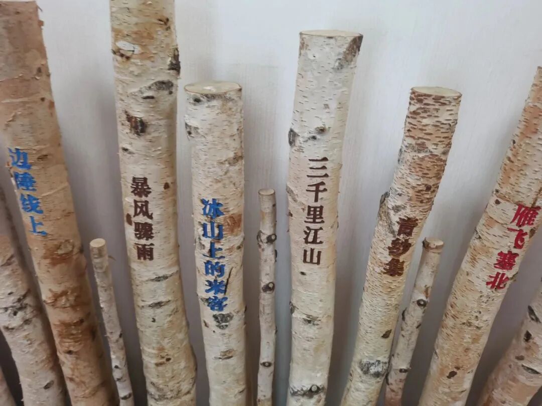 走进文学馆,首先映入眼帘的是一排白桦木栅栏,扑面而来的北方地域特色,每根白色的栏杆上,都刻着一部黑龙江文学史中经典文学篇目的名字。栅栏的上方,是由著名作家王蒙先生题写的黑龙江文学馆馆名。对面墙上,是选自萧红的《呼兰河传》和周立波的《暴风骤雨》片段的两幅木刻书法作品。