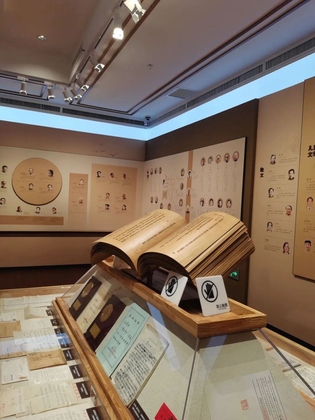 三层为主展厅,设有“黑龙江古代文学”“近现代文学”“当代文学”“民间文学”“在黑龙江生活工作过的作家”等展区,收录展示黑龙江文学史上469位作家信息,突出展示黑龙江现代以来的68位重要作家、72位曾经在黑龙江生活和工作过的作家等信息。