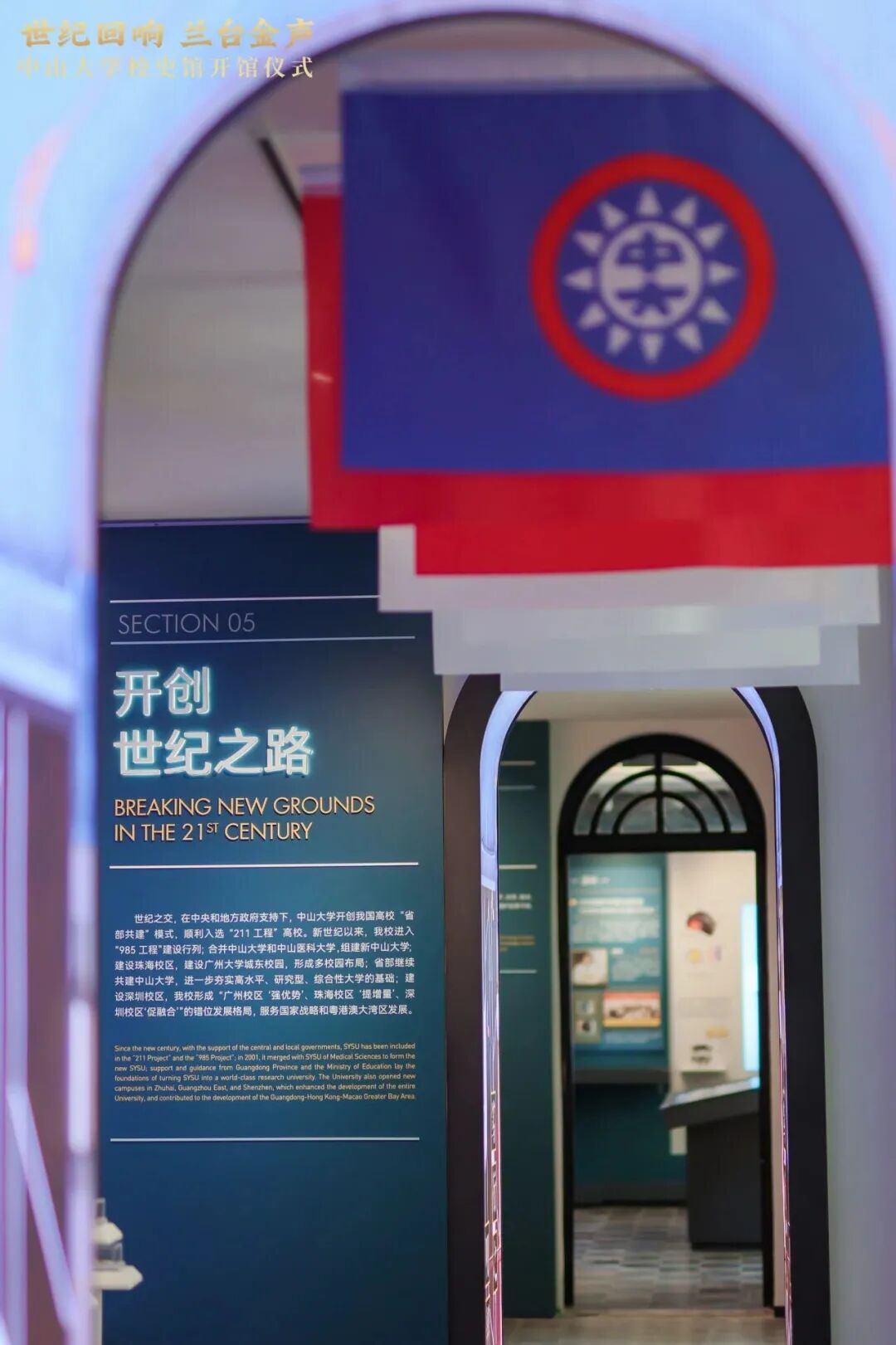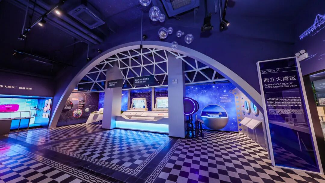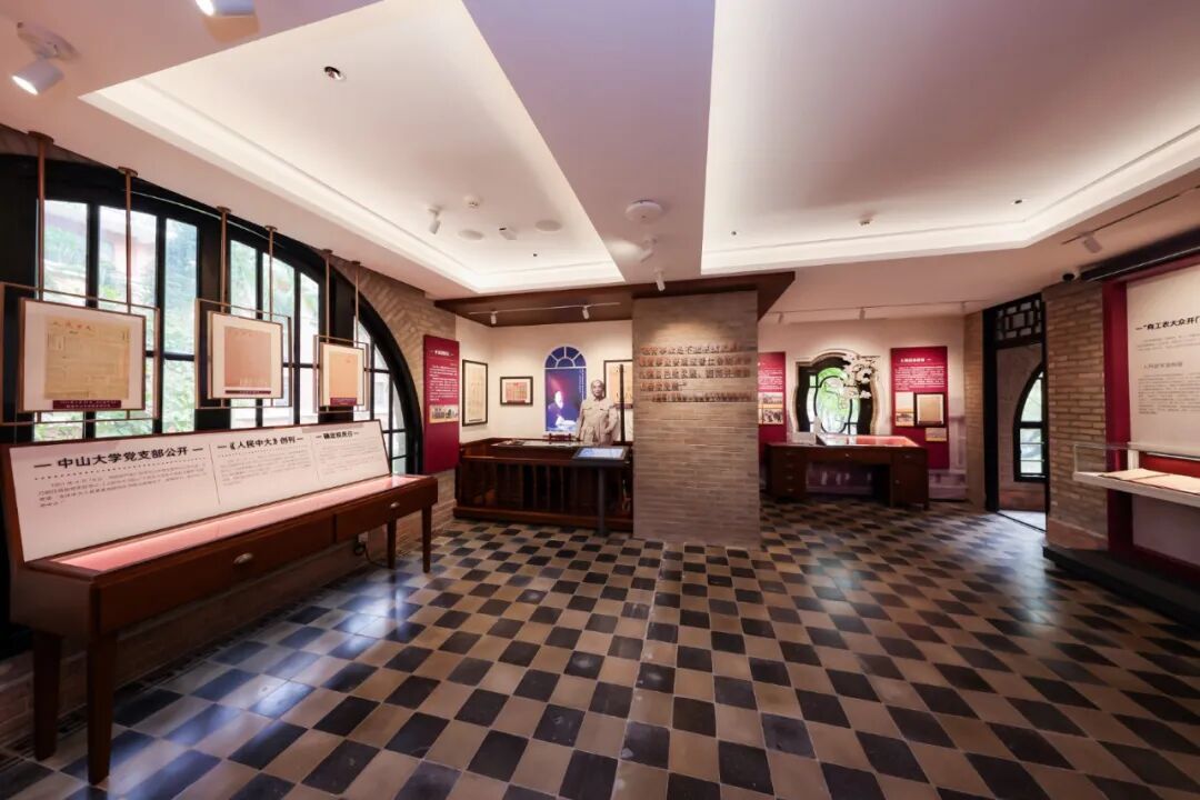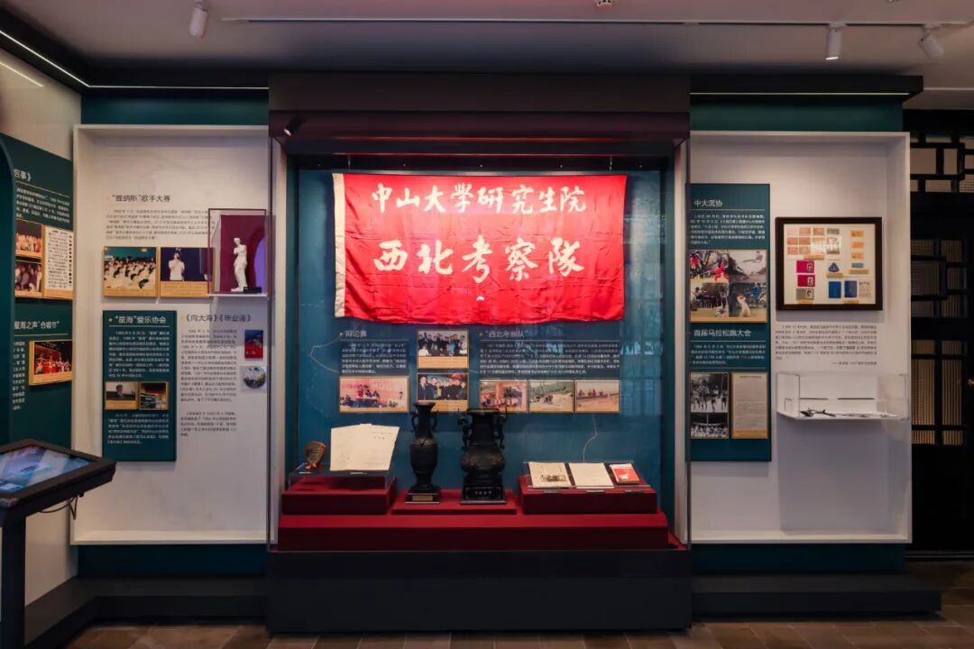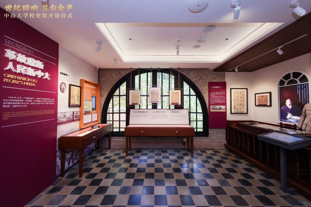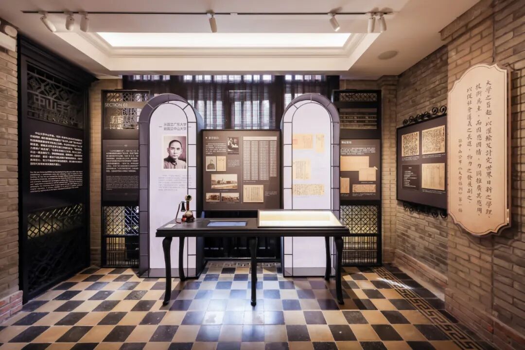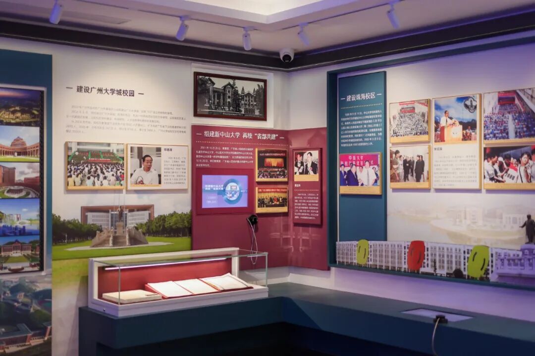 校史馆陈列展览分为“中山手创”“人民中大”“勇立潮头”“星辰大海”四个部分。展览通过丰富的文献、图片、实物和多媒体展示,系统而生动地呈现了中山大学从创校伊始到新时代奋进的百年奋斗历程。
