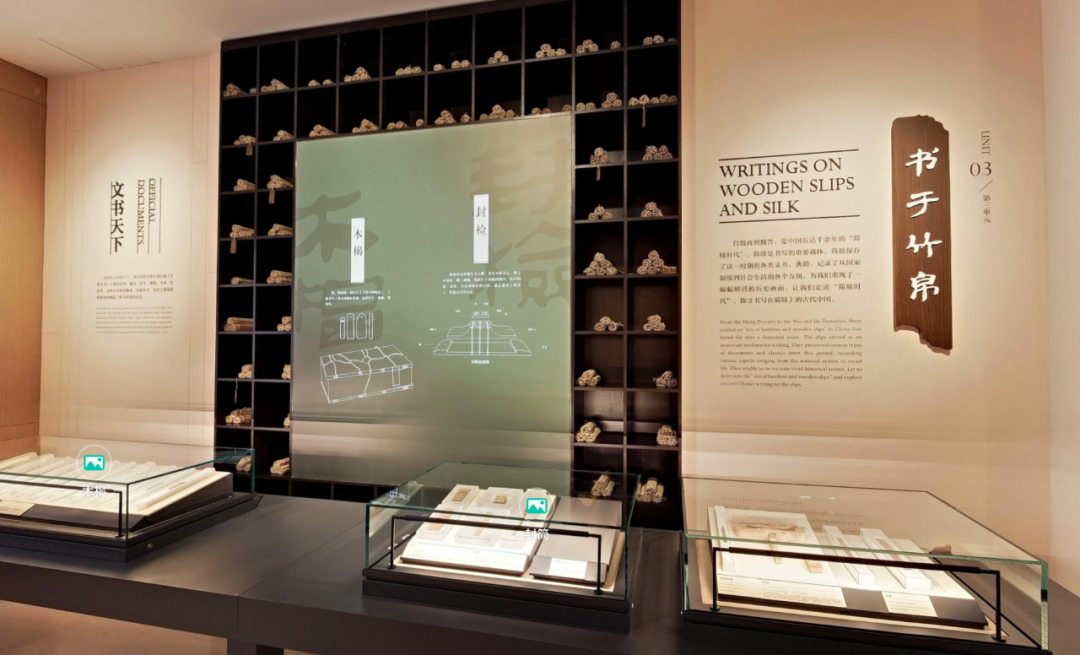 “书于简帛”展厅从书法的视角展现了简牍遗墨的艺术之美,并梳理了汉字在不同历史时期的书法流变与时代经典。