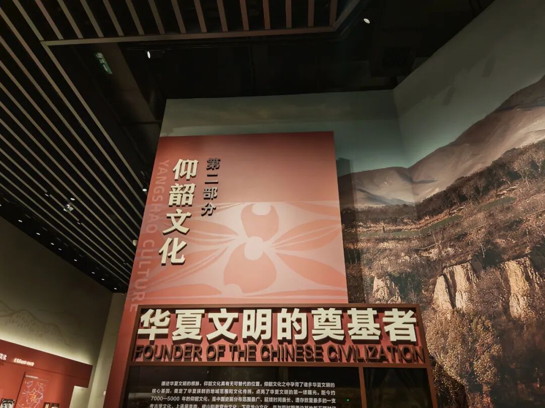 《仰韶文化:华夏文明的奠基者》部分,全面展示仰韶文化从起源到早、中、晚各时期的聚落形态、典型遗址、墓葬形式及出土彩陶的特征,带领观众了解当时的社会分工、阶级形成过程,揭开仰韶时代生死观和社会结构的神秘面纱,领略先民的艺术成就与精神信仰。